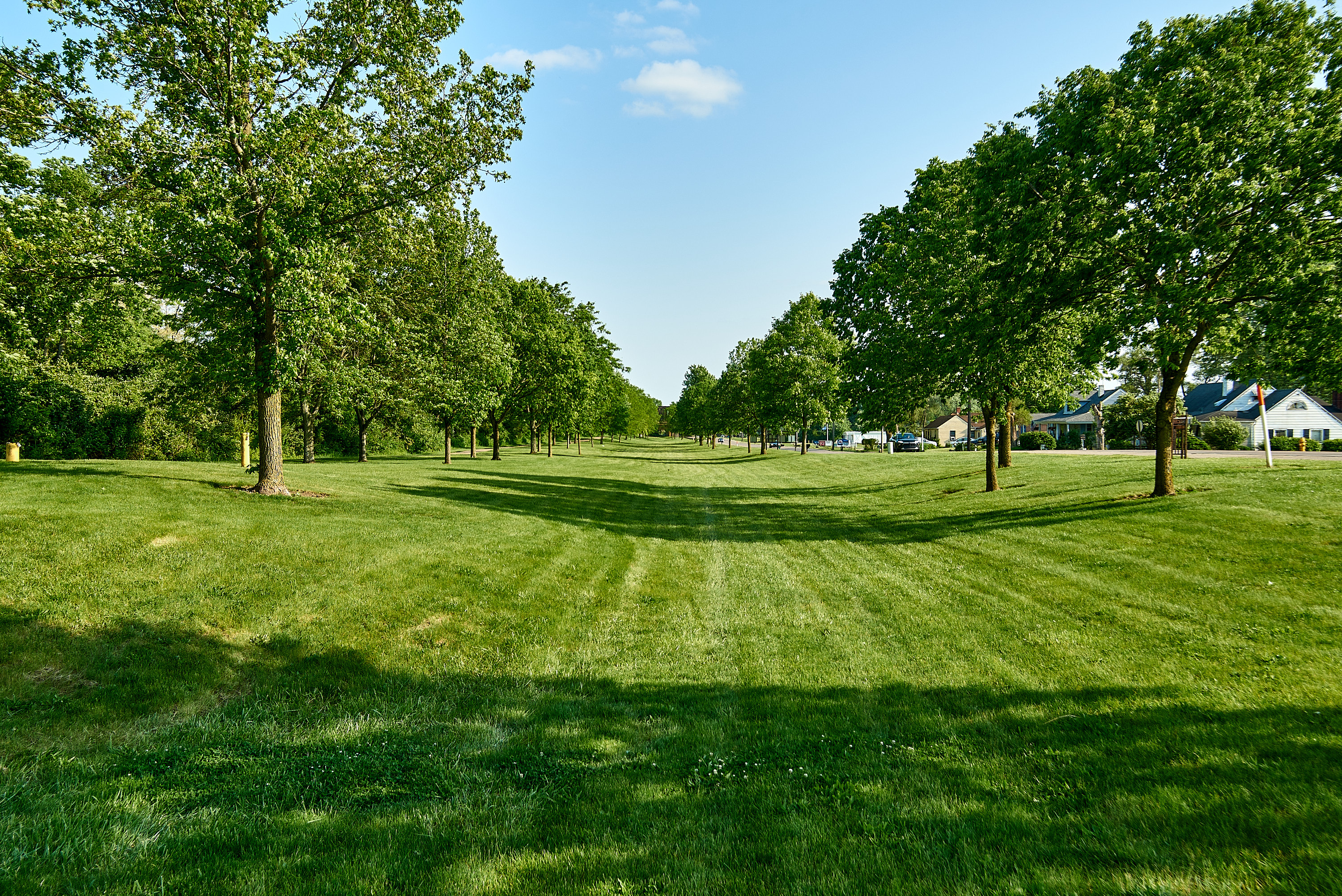 Miami & Erie Canal south of Miamisburg, looking south towards the Big Four Railroad overpass in the distance.