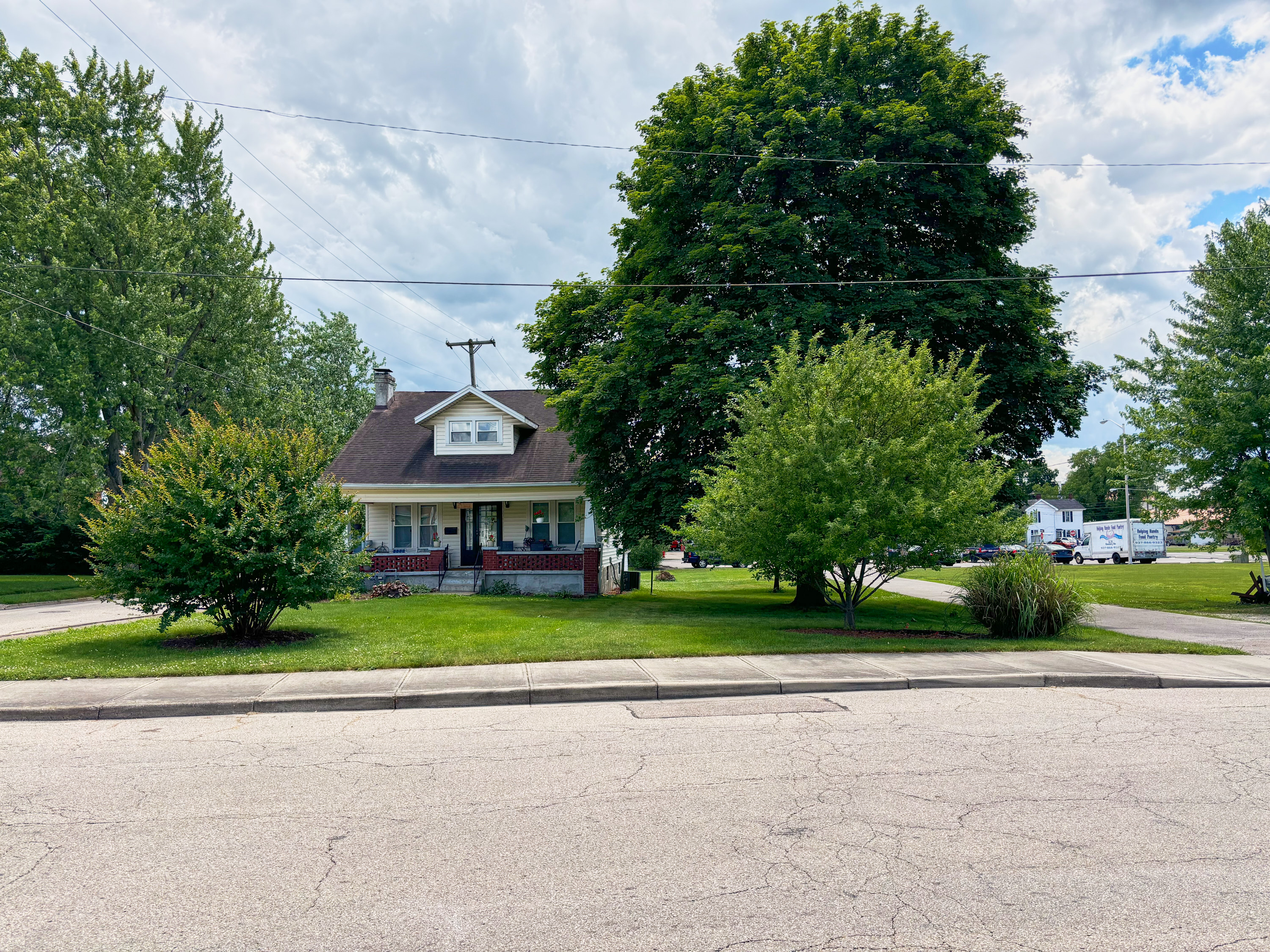 Miami & Erie Canal right-of-way approaching Pearl Street in Miamisburg, looking south. The house is right on the edge of where the canal ran, which was to its right. 2nd Street is on the left.