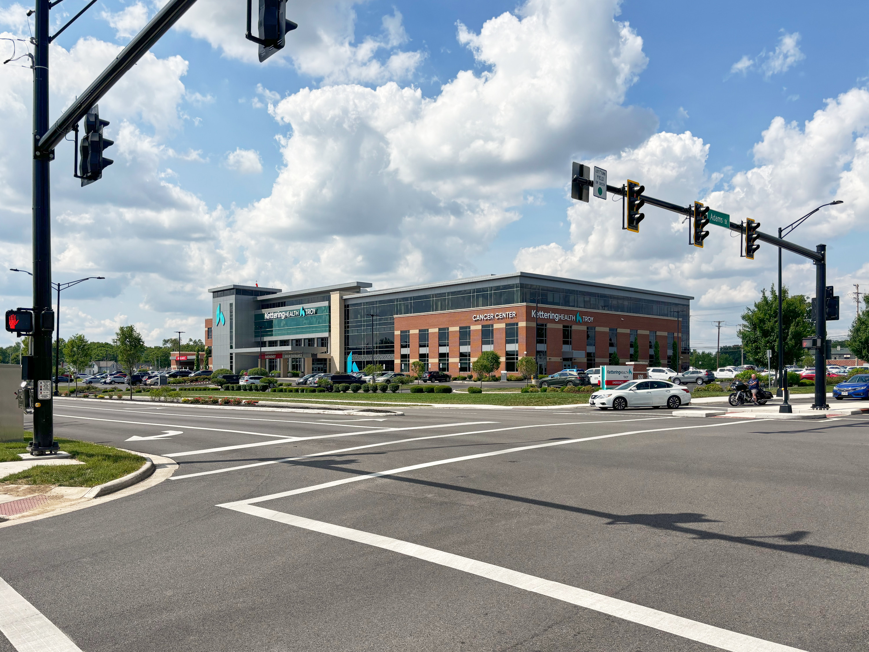 The former location of Miami & Erie Canal lock #12 and Hobart Brothers factory in Troy at Adams and West Main Street, looking northwest roughly along the alignment of the canal which cut diagonally across the street grid in this part of Troy. The old Hobart plant was built over the abandoned canal and the lock in the 1920s through the 1940s and when it was demolished in 2015 the lock stones were salvaged.