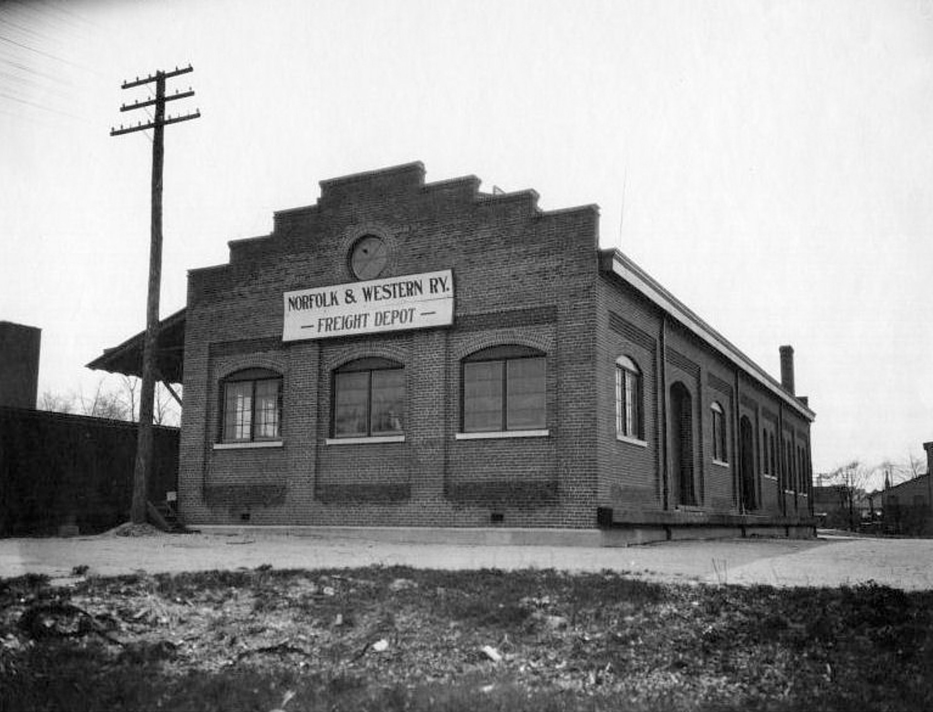Historic photo of the N&W Hyde Park Branch freight depot on Lexington Avenue in Norwood, looking west southwest towards Montgomery Road.