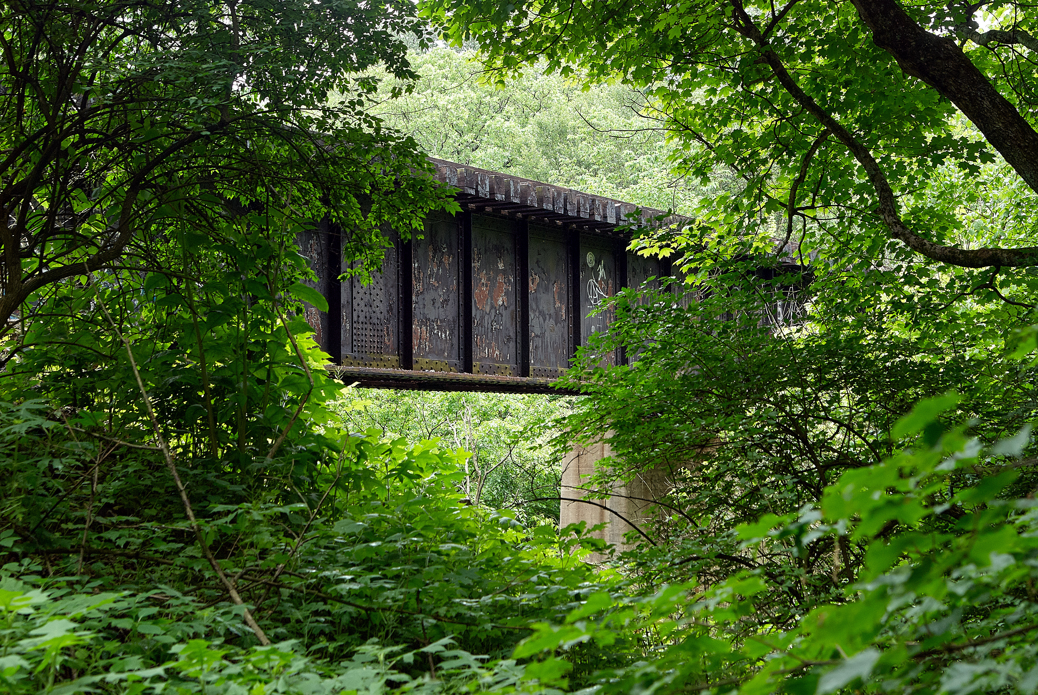 N&W Hyde Park Branch trestle in Ault Park, looking southeast.
