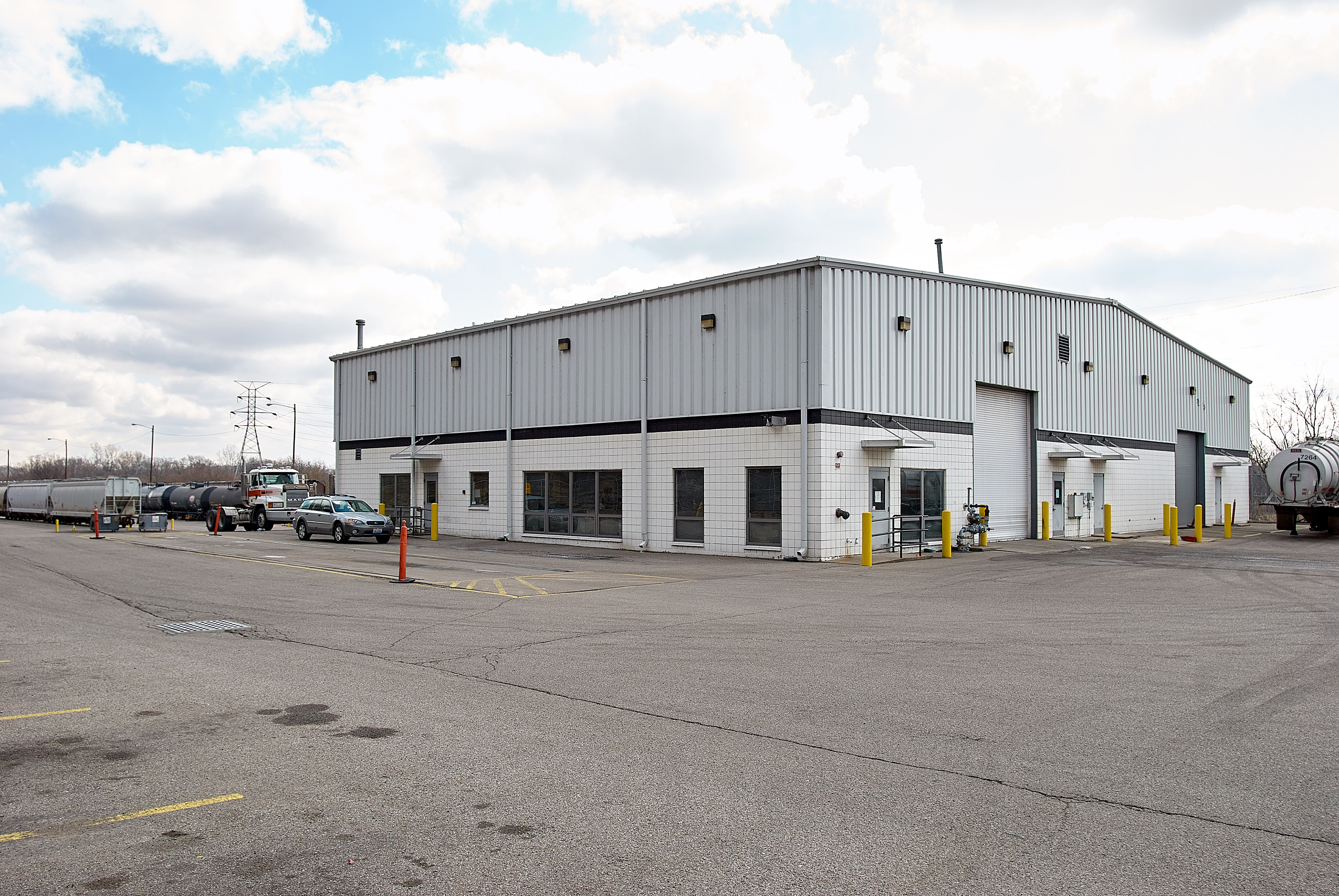 Bulkmatic's facilities in Clare Yard, looking southeast towards the N&W main and the Little Miami River. Originally, this was N&W's main yard in the Cincinnati area. Nowadays it is an intermodal transfer yard where mostly agrigucultral bulk products (flour, corn meal, hops, corn syrup, etc.) are unloaded from tanker cars to trucks for delivery around the city. Most rail cars come from Sharon Yard via the former PRR Richmond Division.