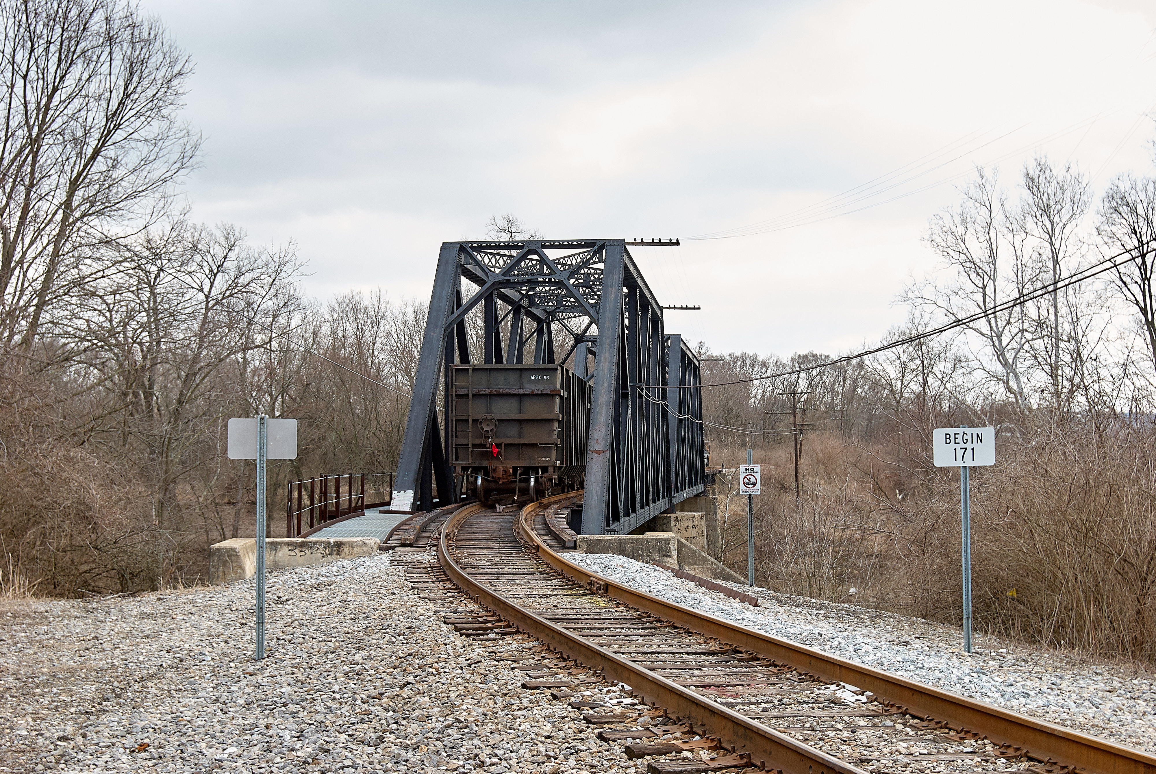 A short Norfolk Southern train crossing the Little Miami River, looking south.