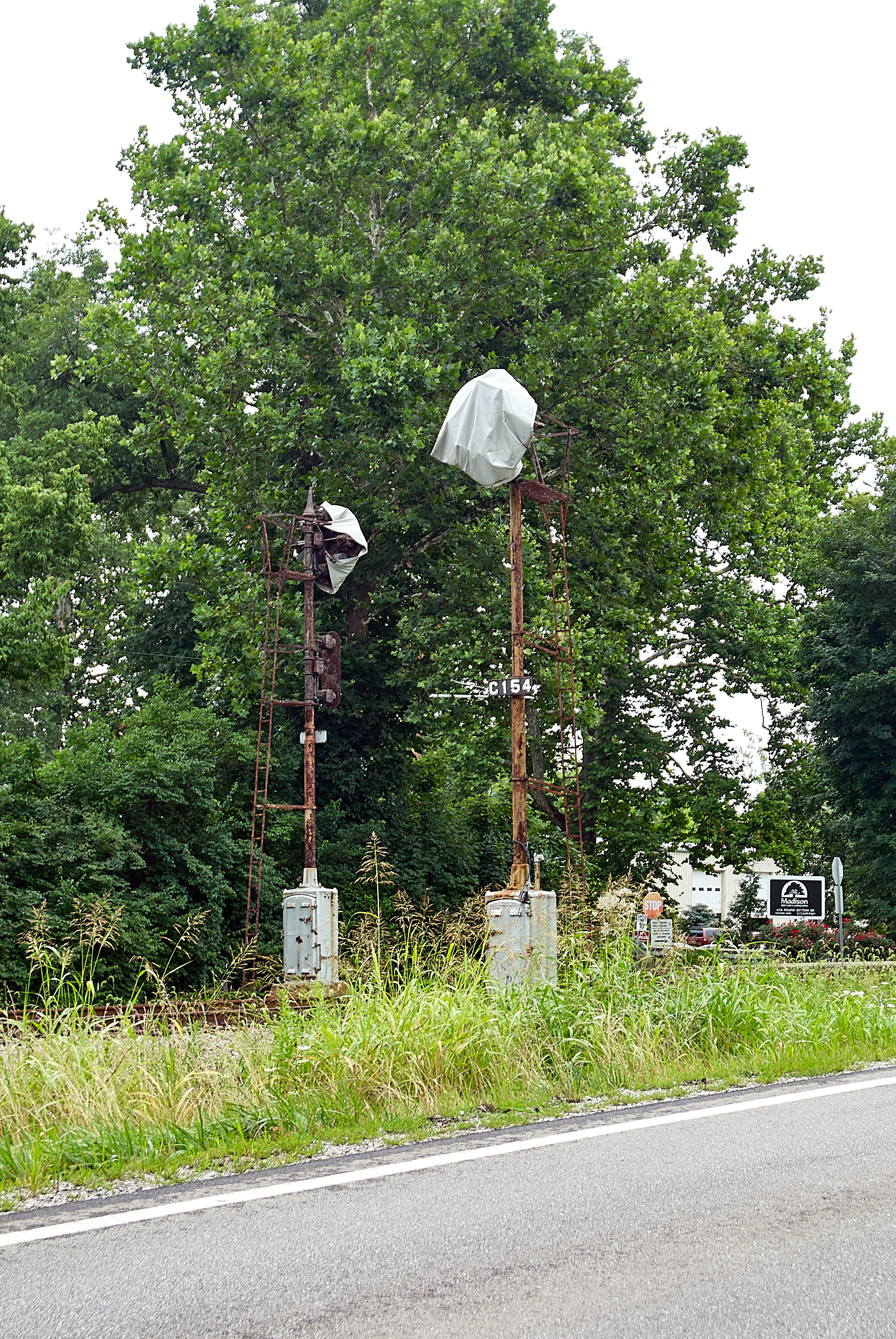 Abandoned N&W Peavine CPL signals along Round Bottom Road west of Beechwood near South Milford, looking north.