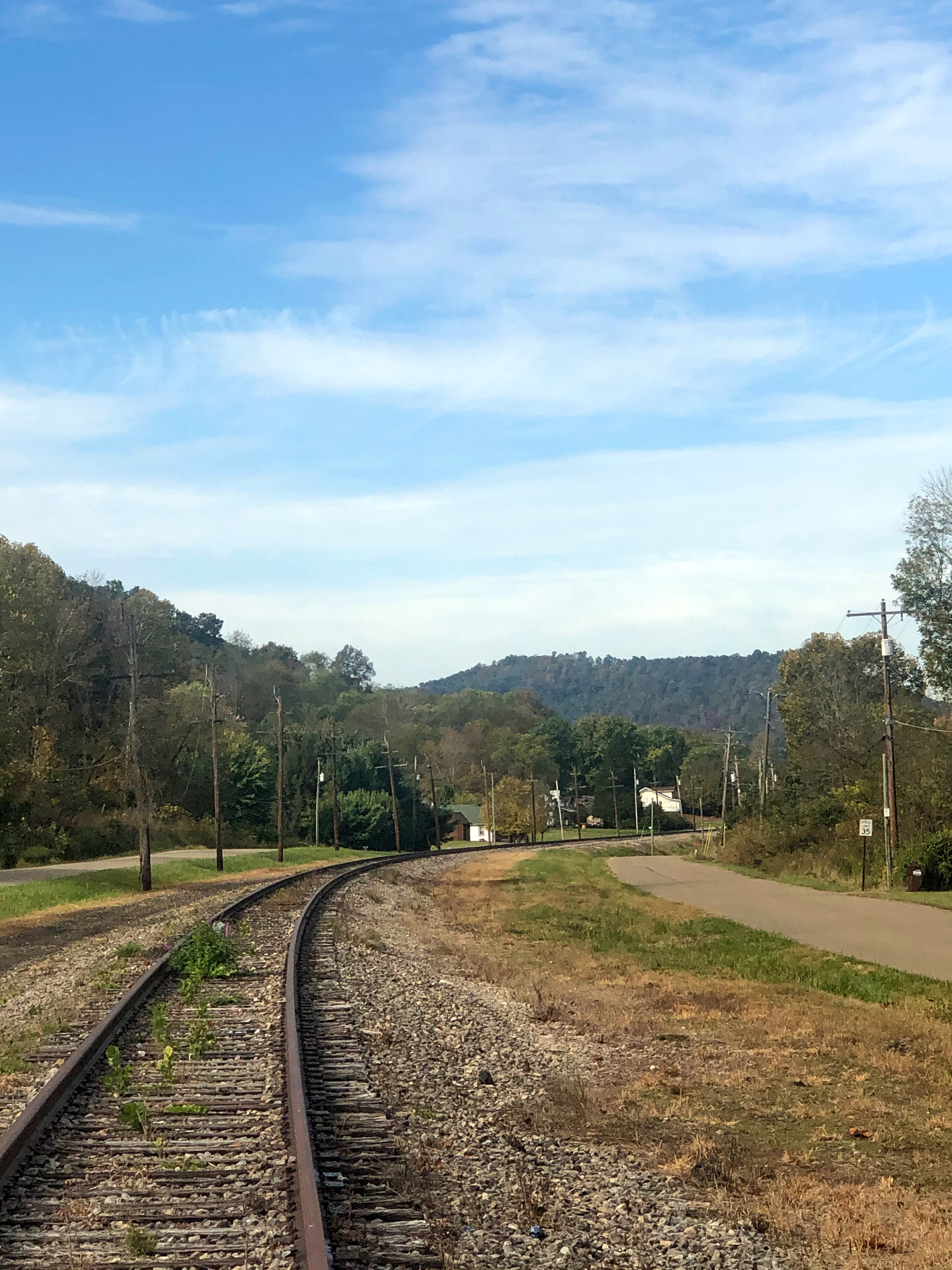 N&W Peavine tracks in McDermott, looking west from the east side of town between Barker and McDermott-Rushtown Road.