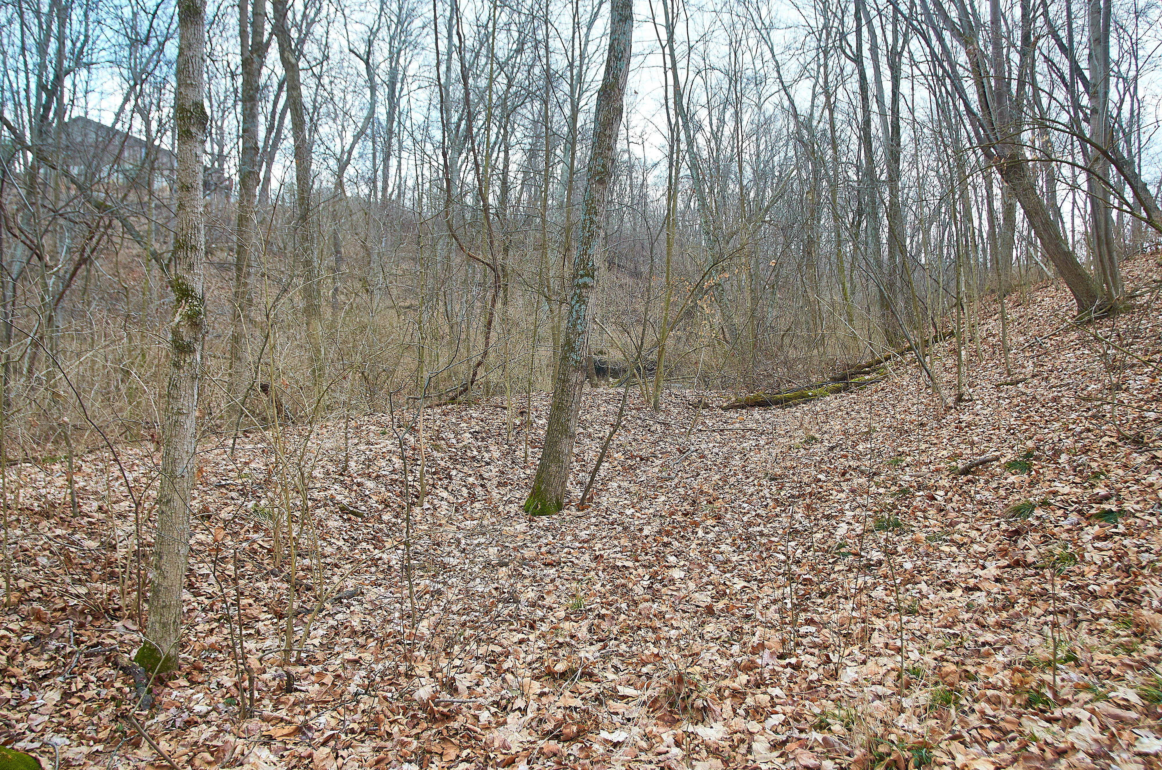 Cincinnati & Eastern New Richmond Branch grading along Dry Run north of Tobasco Junction, looking south from the vantage point of the last photo. The house at the top of the hill on the left is on Jones Lane.
