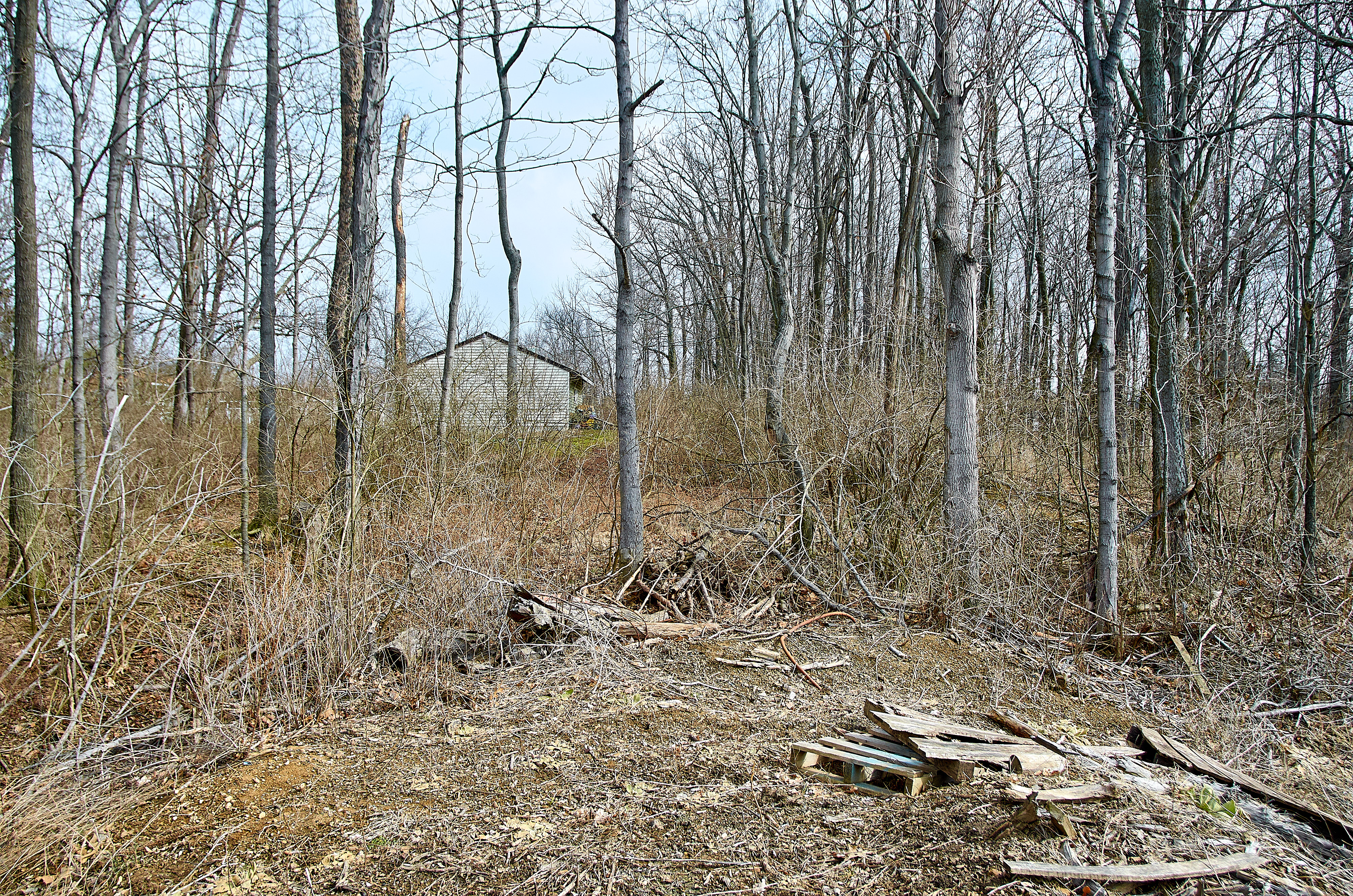 CG&P trestle approach at the east side of Tobasco Junction, looking east from the vantage point of the last photo. The house in the background is at the end of Jones Lane, which is the former right-of-way.
