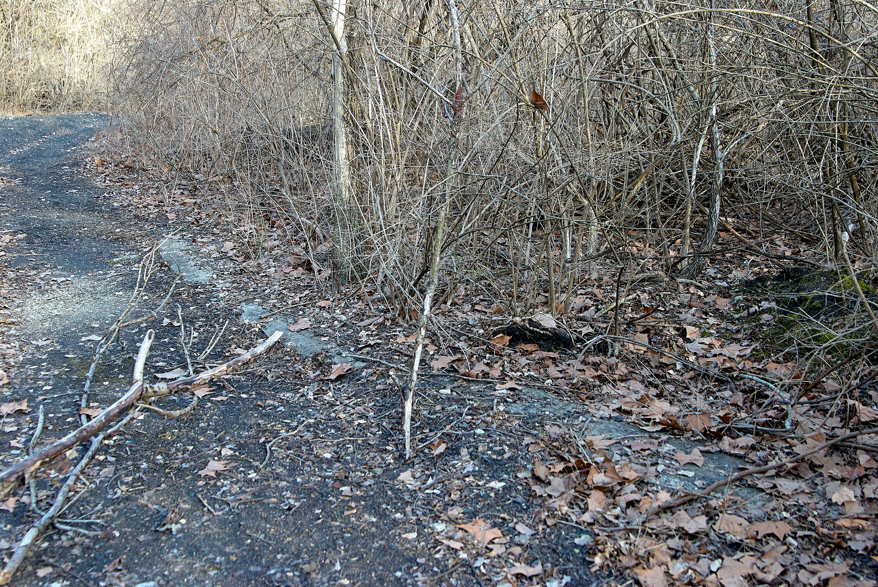 A little curved concrete foundation is all that's left of the Pennsylvania/Little Miami Railroad's roundhouse in the Pendleton Yards, looking southeast. This was removed to build the Walworth Junction housing development.