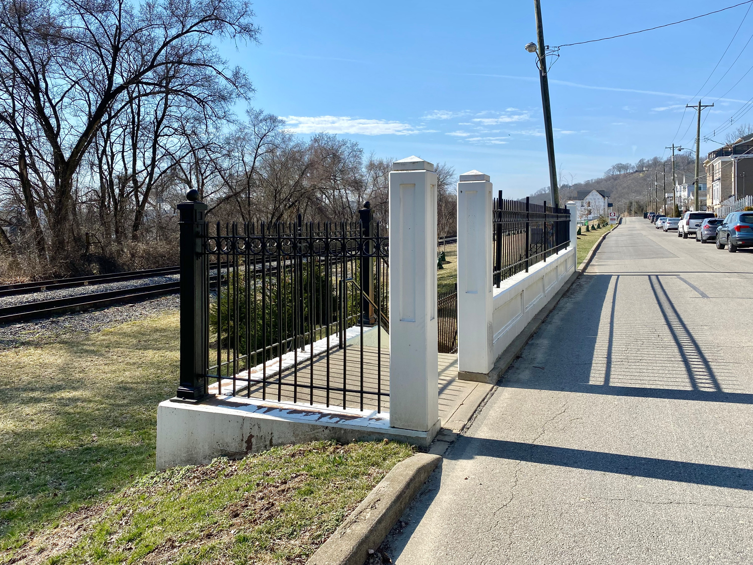 Restored stairs and fencing for the underpass along Walworth Avenue in Columbia-Tusculum, looking west.