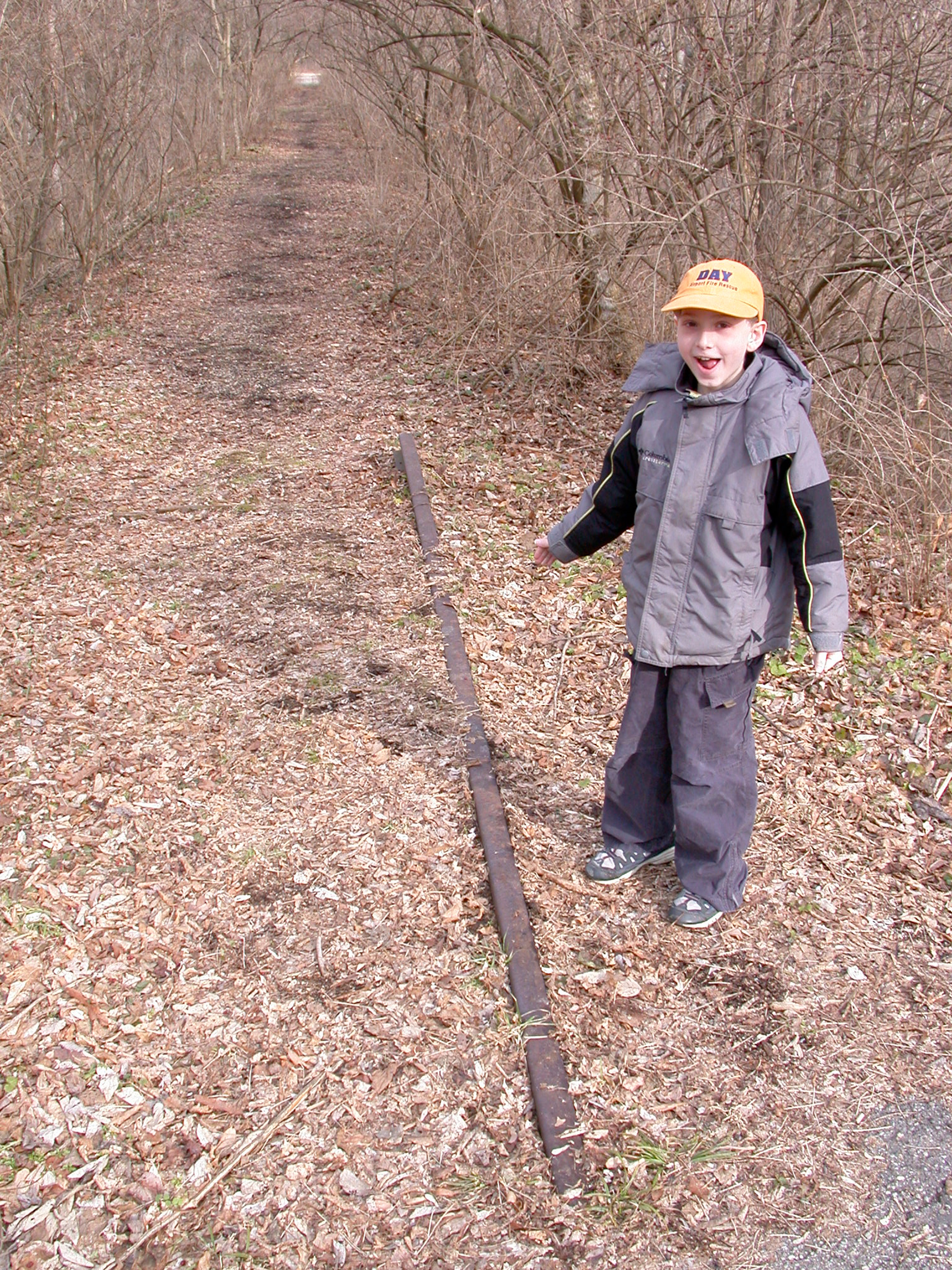Tyler has found some surving rail from the Cincinnati & Muskingum Valley (PRR Zanesville Branch) at the end of Township Highway 204 in Salem Township, looking northeast. A trestle crossing is just barely visible in the distance at the top of the picture.