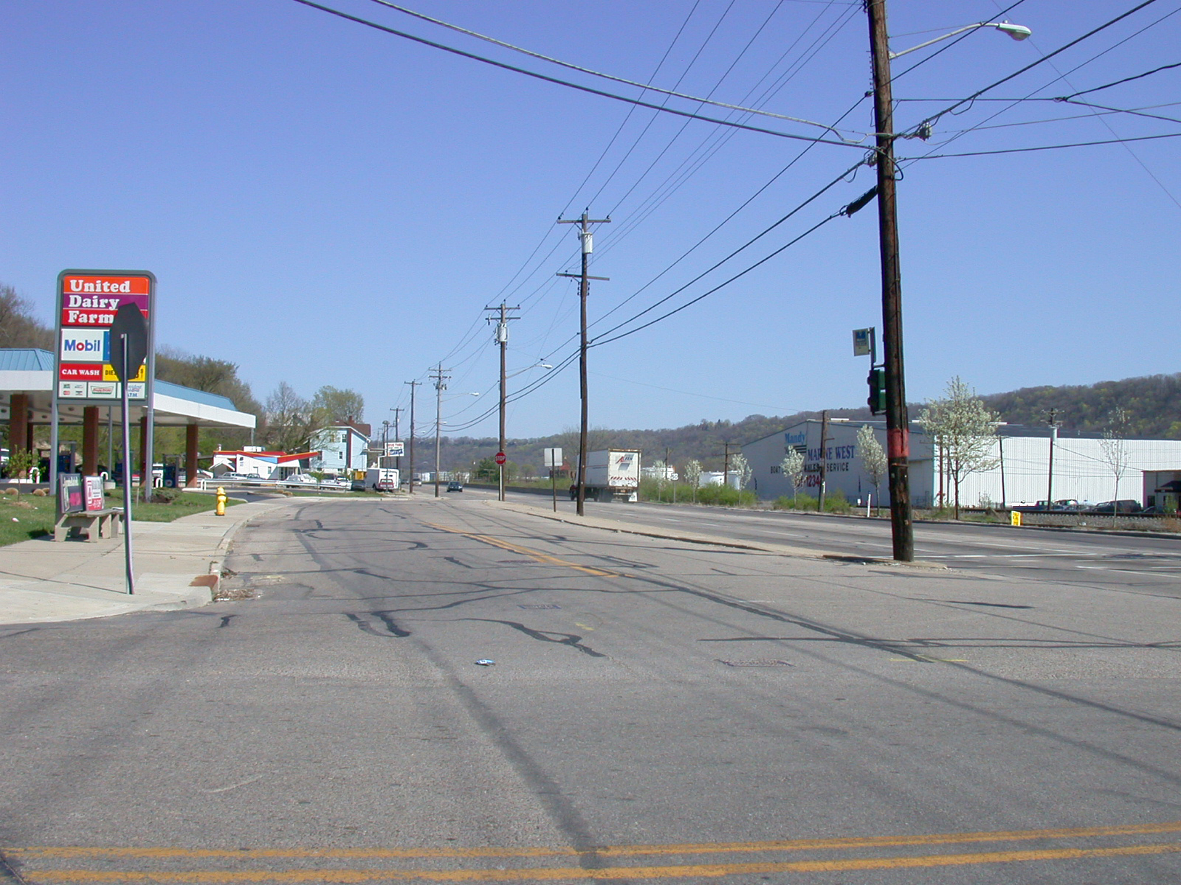 The location of the Anderson Ferry loop, looking east along River Road. This extra road to the north of River Road at Anderson Ferry was for the streetcar loop and an extra layover track. The CL&A depot was just off the picture to the right, but nothing remains.