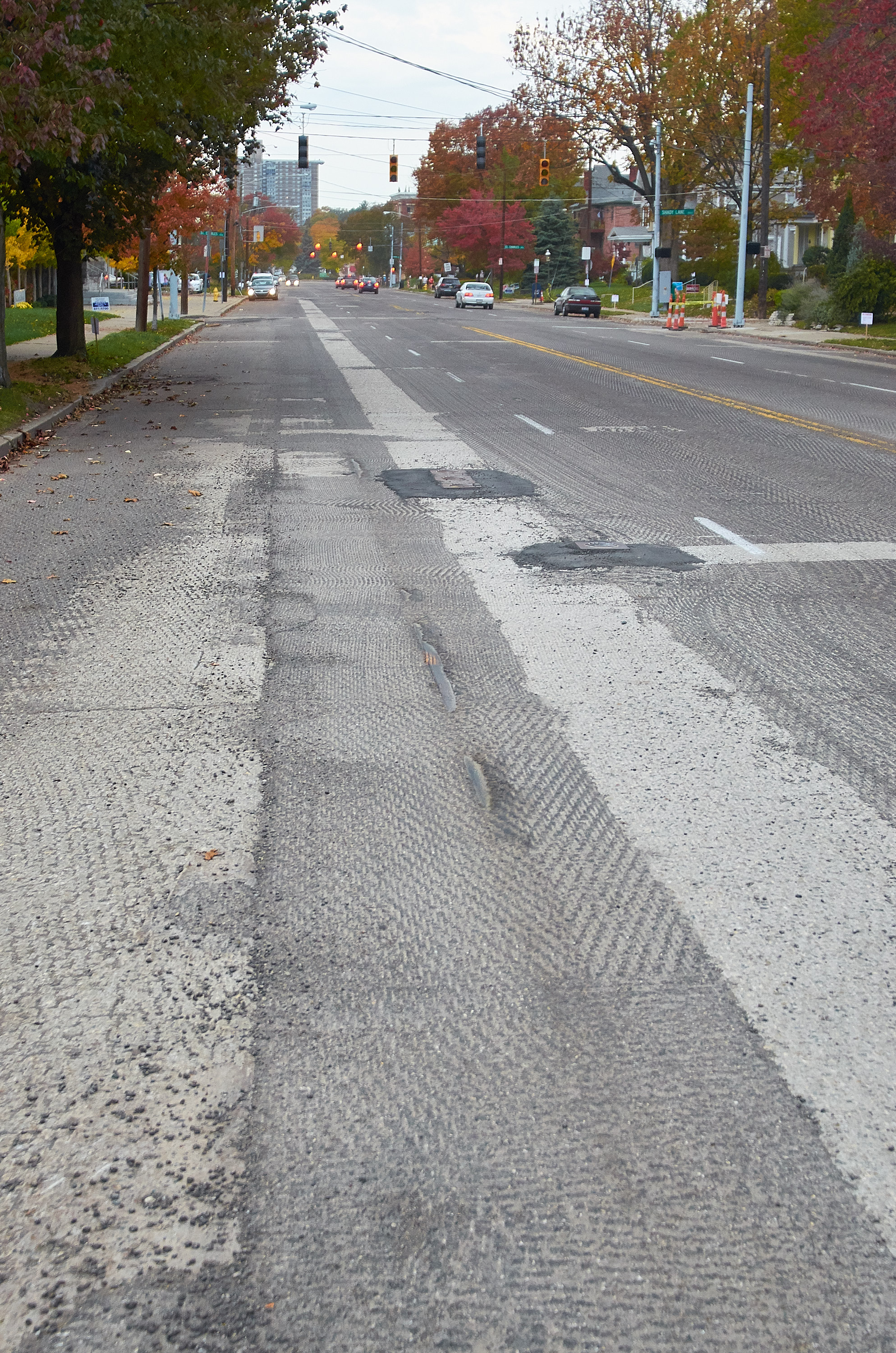 Revealed tracks at Erie and Monteith, looking west towards Shady Lane and Hyde Park Square.