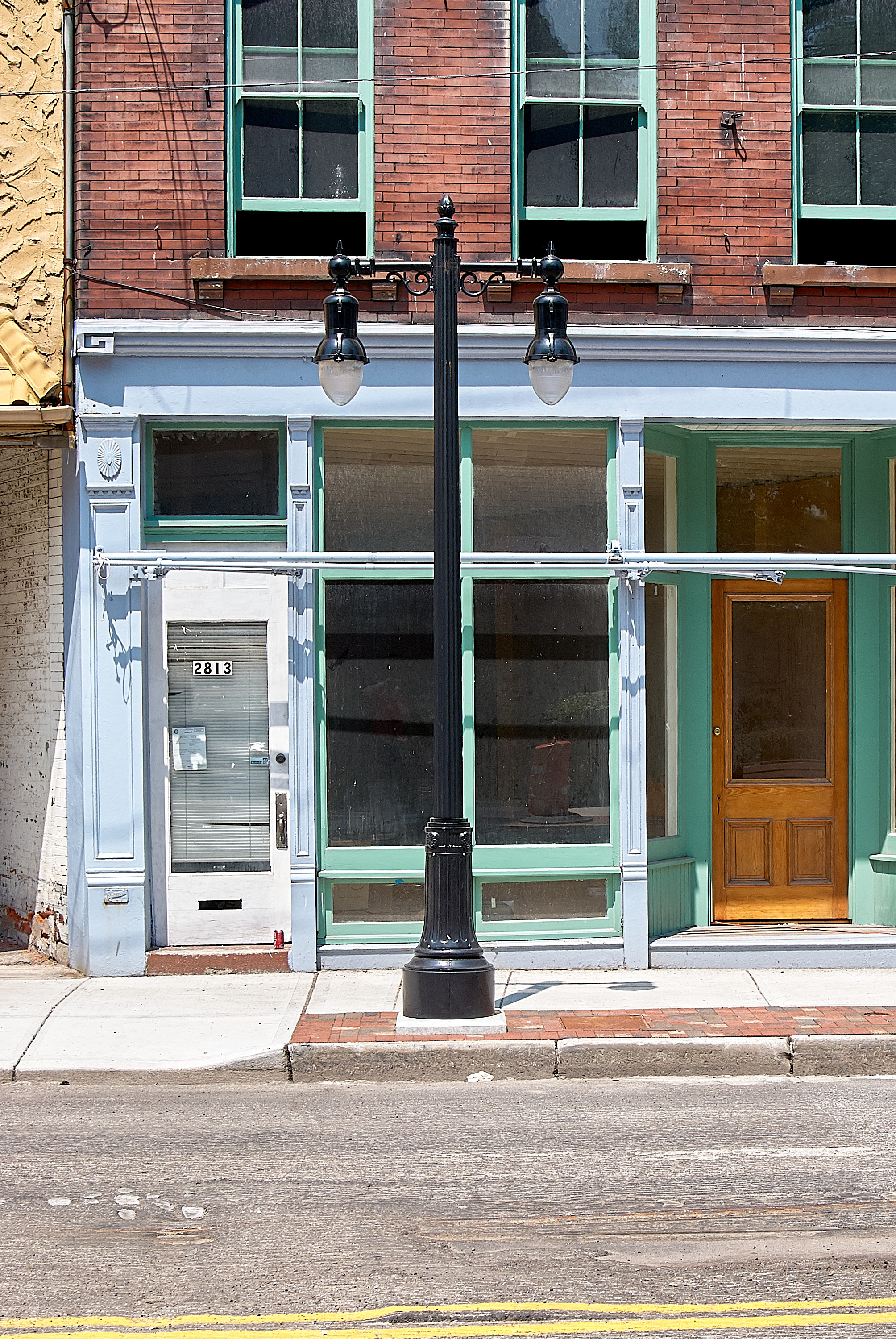 Along Woodburn Avenue in East Walnut Hills. This is a pretty typical building for this stretch of Woodburn as well as along McMillan near Peeble's Corner. These are some pretty old commercial buildings for being outside of downtown or Over-the-Rhine, since this was the first area of the hilltops to be heavily settled after the inclines and cable car routes were built. This stretch of Woodburn Avenue, for instance, was along the route of the Walnut Hills Cable Railway, which operated to Blair Avenue and Montgomery Road in Evanston, just a few blocks south of I-71. New streetcaping is being installed here and some exposed tracks are in the pavement at the bottom.