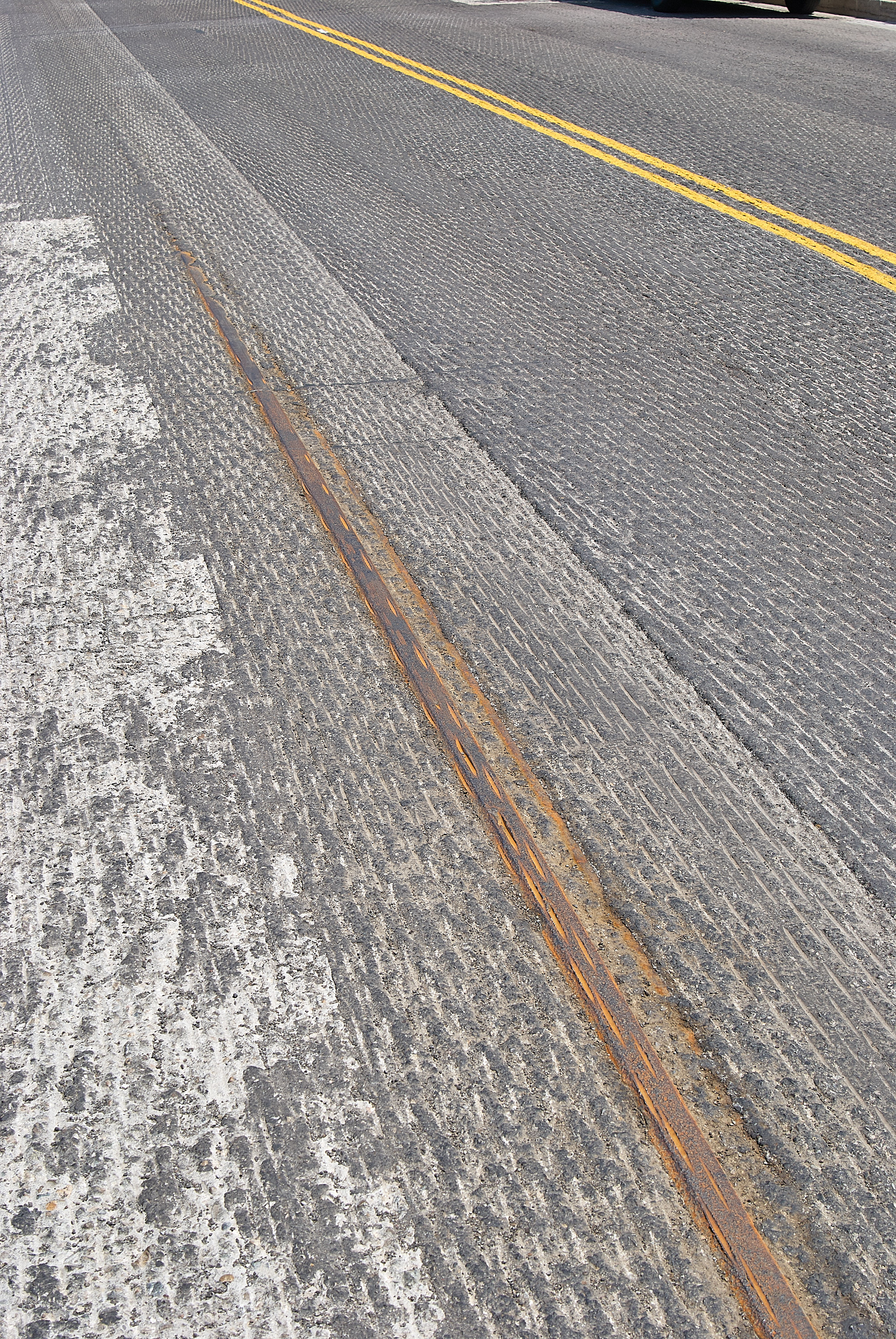 Revealed tracks on Woodburn Avenue in East Walnut Hills near Madison Road. The machine used to scrape up the old asphalt was set to dig just a little too deep, and it scoured the rail here, probably dulling if not damaging the scraper blades.